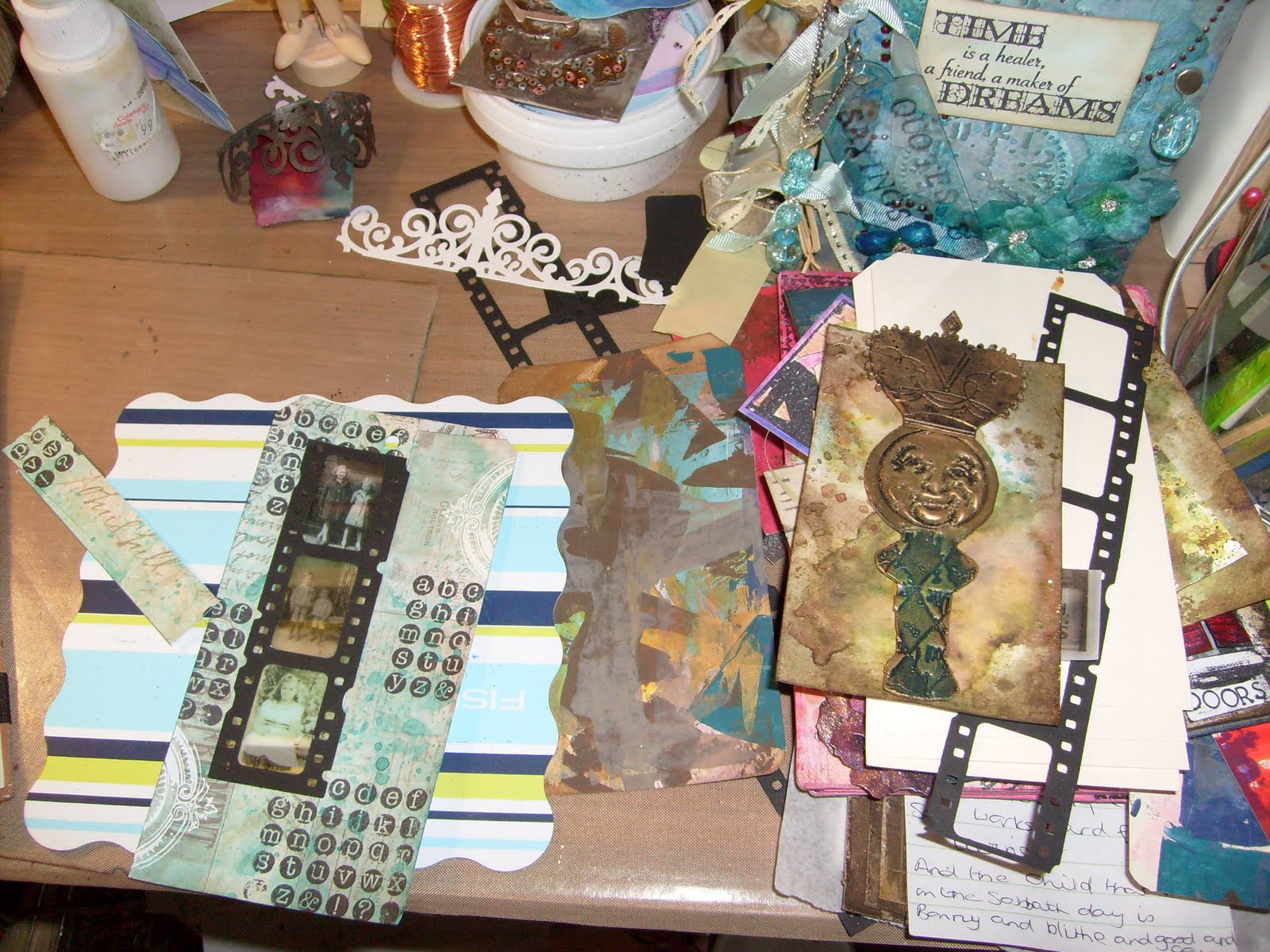 The first layer is just the back board from an old pad of paper, to this you add chipboard words, die cuts, sequin waste whatever you want really.